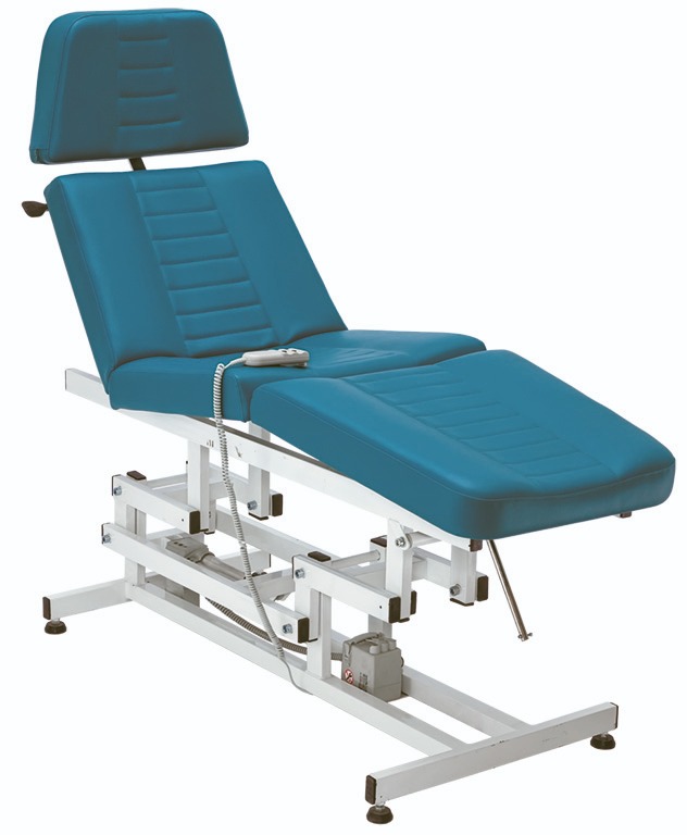 Кушетка универсальная с электрической регулировкой высоты, раскладывающаяся в горизонтальное положение. Элегантная кушетка оснащена анатомическим матрасом из высококачественного поролона, обтянутого искусственной кожей. Металлический каркас белого цвета. Спинка регулируется с помощью пневматики. Регулировка нижней части осуществляется механическим способом. Имеет регистрационное удостоверение на медицинское изделие № РЗН 2018/7566 от 31.08.2018г.