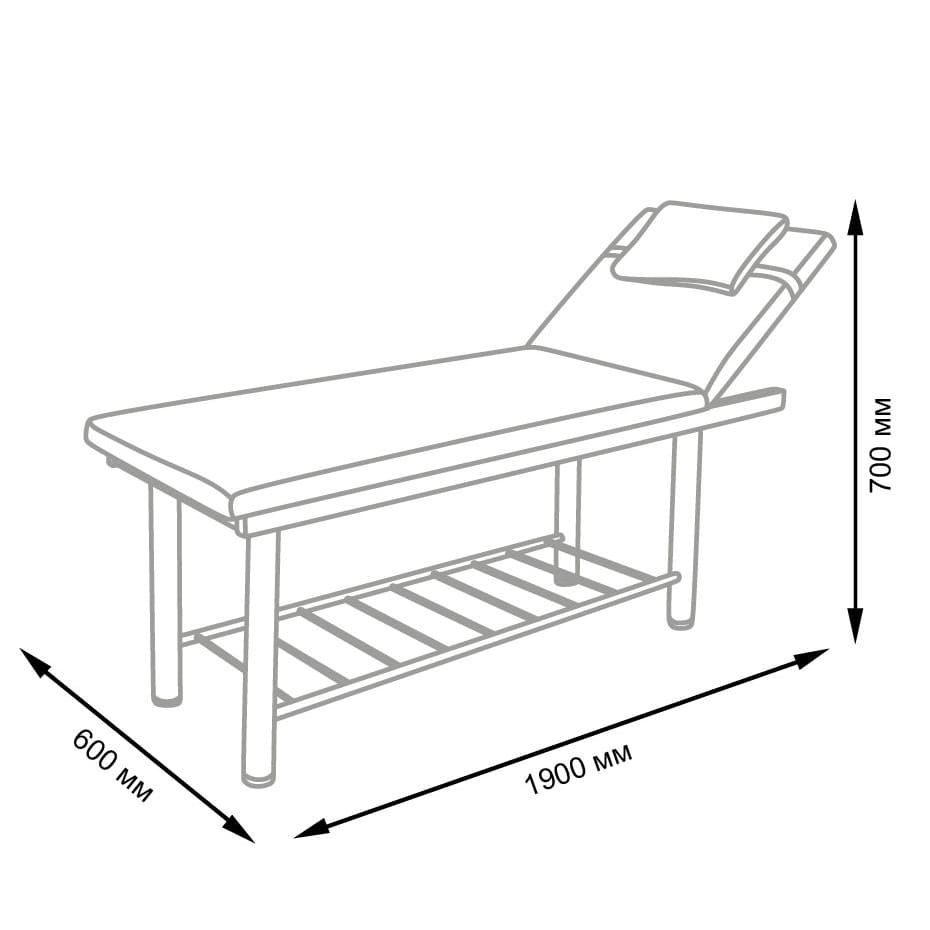 Комплектация: каркас из металла, ножки, мягкие детали (стол, подголовник с овальным вырезом, съемная подушка), усилитель каркаса в виде решетки.