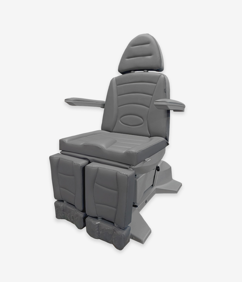 Педикюрное кресло оснащено тремя электромоторами, обеспечивающими регулировку высоты, угла наклона спинки и угла наклона сиденья. Опоры для ног фиксируются при помощи газ-лифтов. Кресло легко раскладывается в горизонтальное положение, образуя ровную поверхность. Надежная конструкция системы подъема обеспечивает высокую устойчивость кресла даже при максимальной высоте. Откидывающиеся подлокотники делают более удобным процесс посадки клиента. Управляется при помощи ручного проводного пульта.