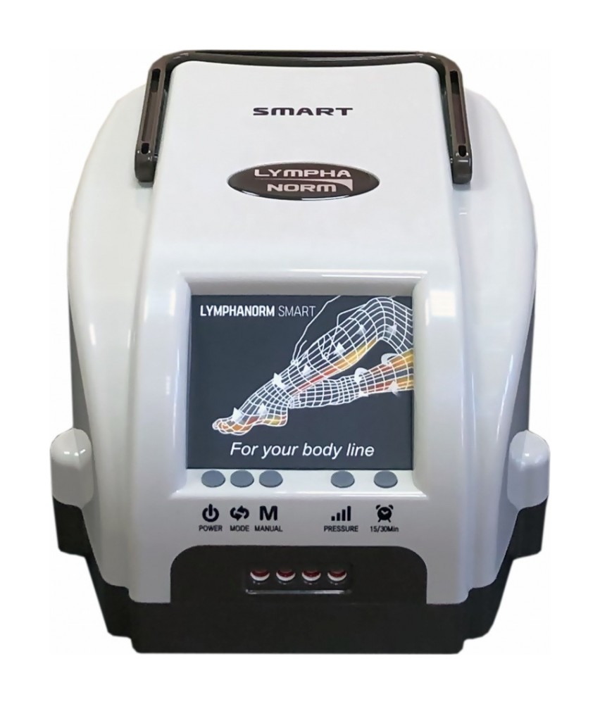 Аппарат для проведения прессотерапии LymphaNorm Smart (Лимфанорм Смарт) — это компактное и мощное устройство, которое позволяет проводить процедуры дома. Он представляет собой компрессор, который подаёт воздух в камеры манжет через шланги по заранее составленной программе.